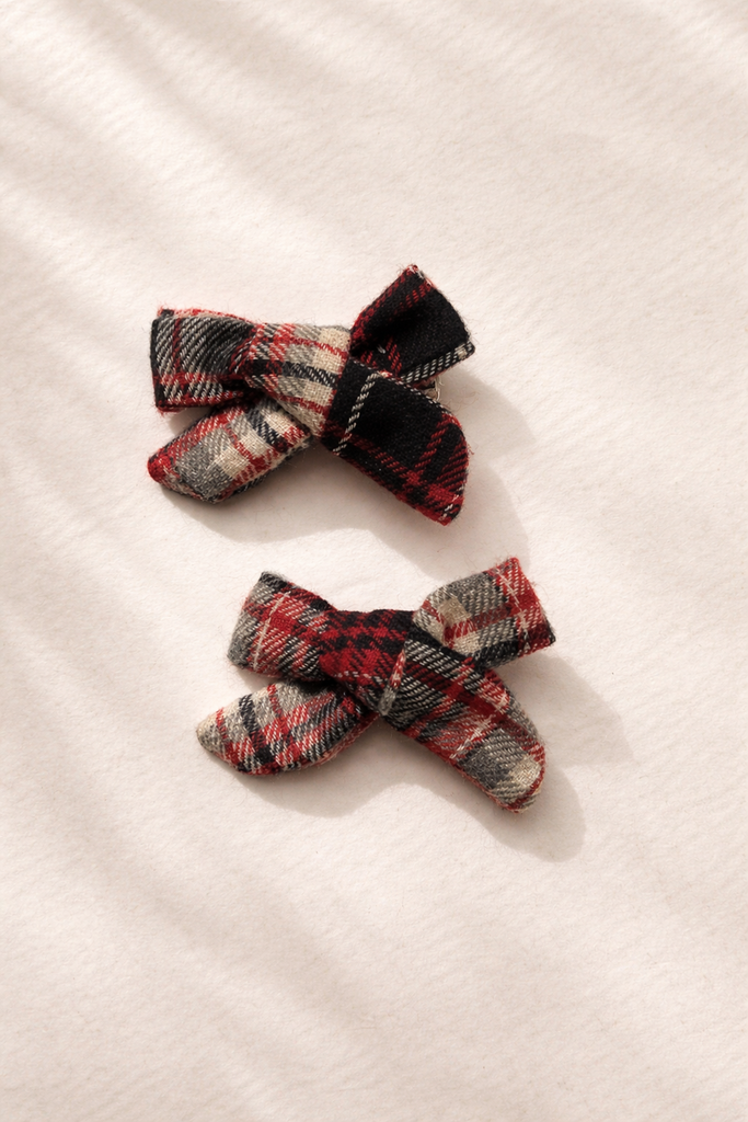 Bright and stylish, this set features two multicolor plaid knot bow clips that add a fun pop of pattern to any hairstyle. Perfect for both everyday outfits and festive looks.