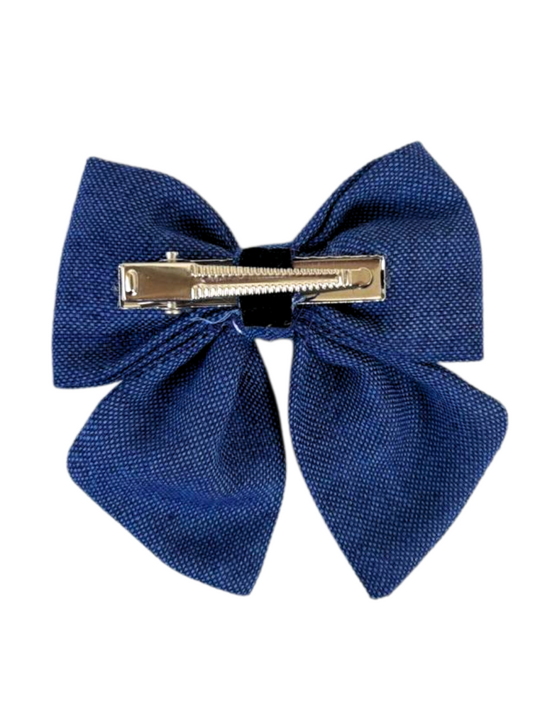 Add a sweet sparkle to everyday hairstyles with this elegant blue bow alligator clip from Knotty Ribbons. Made with a textured fabric finish, the bow features delicate pearl accents and a shimmering heart detail at the center, giving it a charming yet classy look. Perfect for both casual wear and special occasions, this accessory effortlessly elevates any outfit.