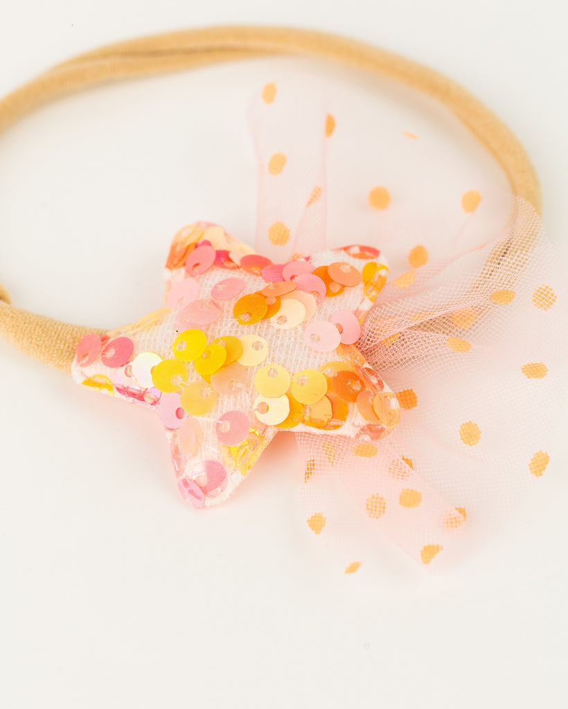 - Headband Attachment: The star and tulle are attached to a thin, soft headband, likely made of a stretchy fabric for comfortable wear.