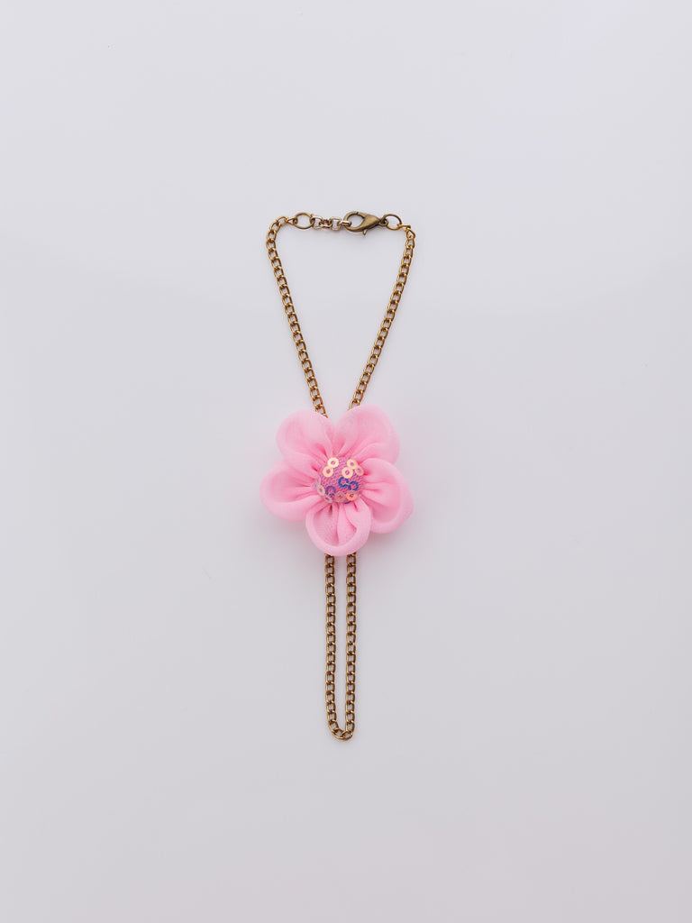 Chain Bracelet with vibrant flower and Sequence Center- Pink