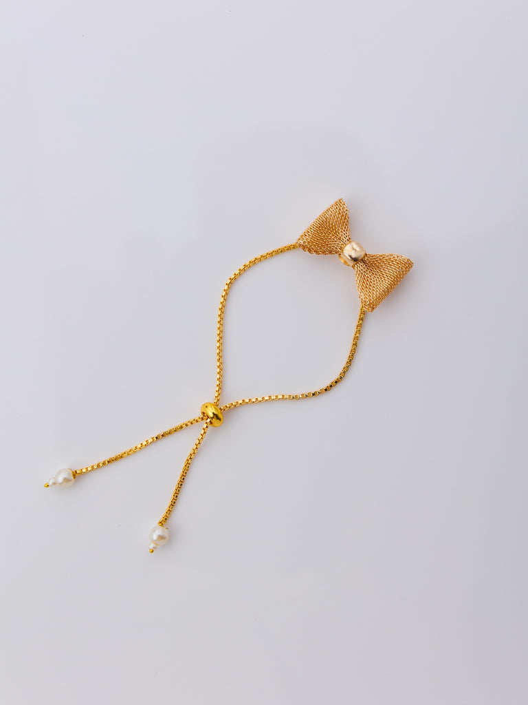 Knotty Ribbons Princess Bow Adjustable Chain Bracelet - Gold:
