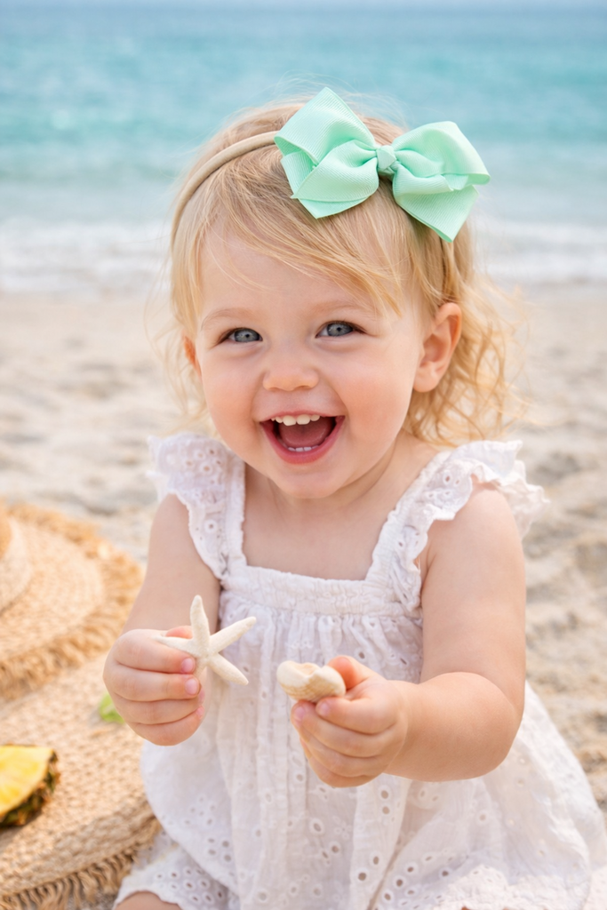 Fresh, soft, and effortlessly adorable, the Chic Ribbon Bow Headband in Mint Green is the perfect accessory to brighten your little one’s outfit. The beautifully crafted ribbon bow adds a delicate and stylish touch, making it ideal for both everyday wear and special occasions.