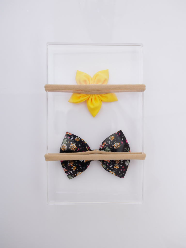 Knotty Ribbons Set of 2: Black Floral Bow & Yellow Flower Headband - Black & Yellow (0-5yrs)