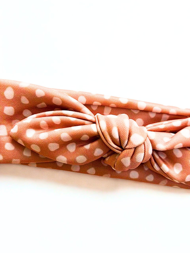 Shop the Girl Polka Dot Knot Headband- Orange from Knotty Ribbons. A soft, stretchy, and stylish hair accessory for babies, toddlers, and girls — perfect for daily wear or special occasions.