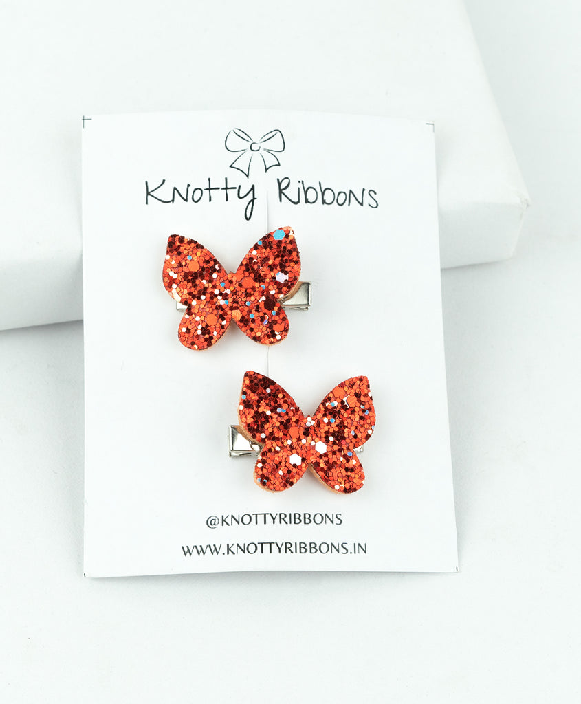 Glitter Butterfly Hair Clips - Red
