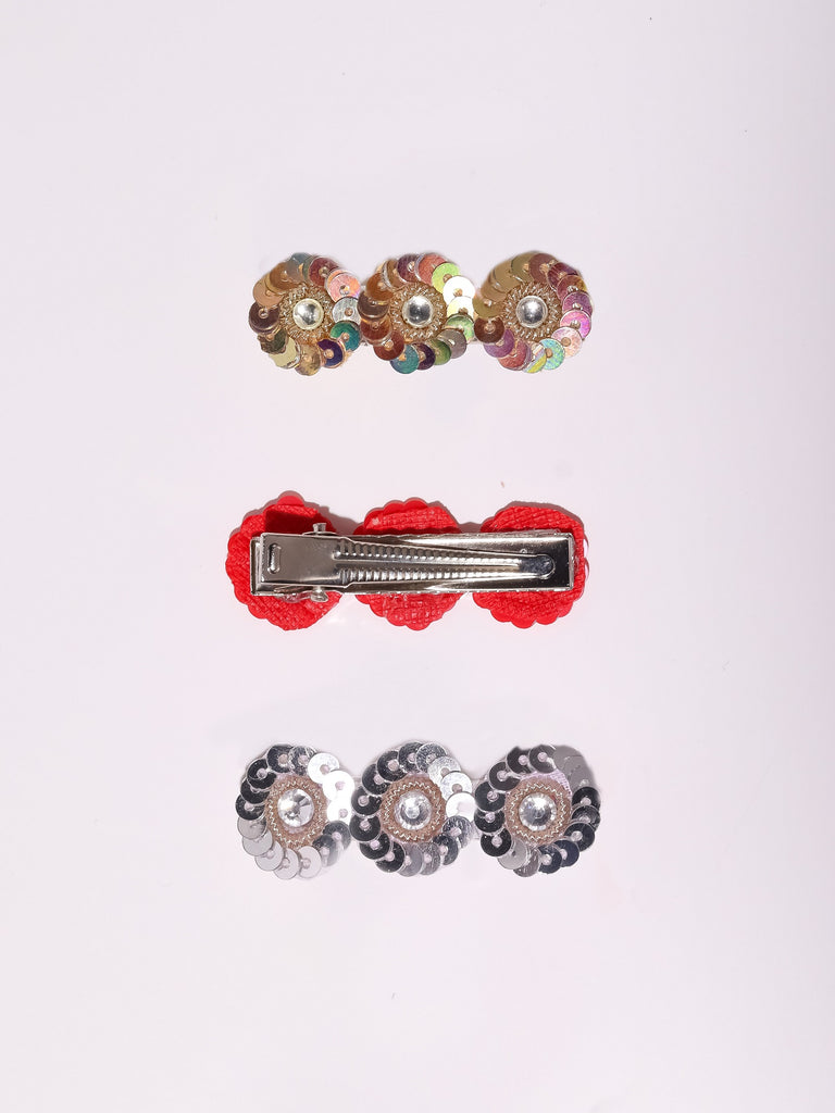 Sequined Ethnic Girls Alligator Hair Clip Set of 3- Silver, Red and Golden