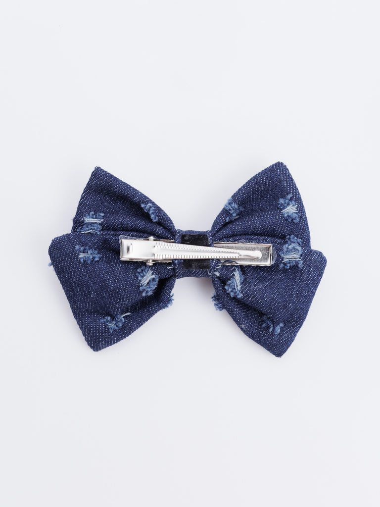 Ripped Denim Alligator Bow Hair Clip- Dark Blue