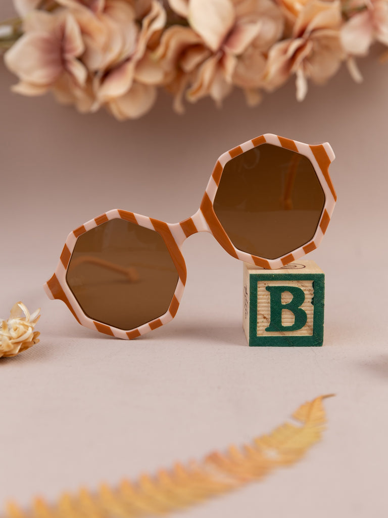 Striped Hexagon Sunglasses for Kids- White & Orange