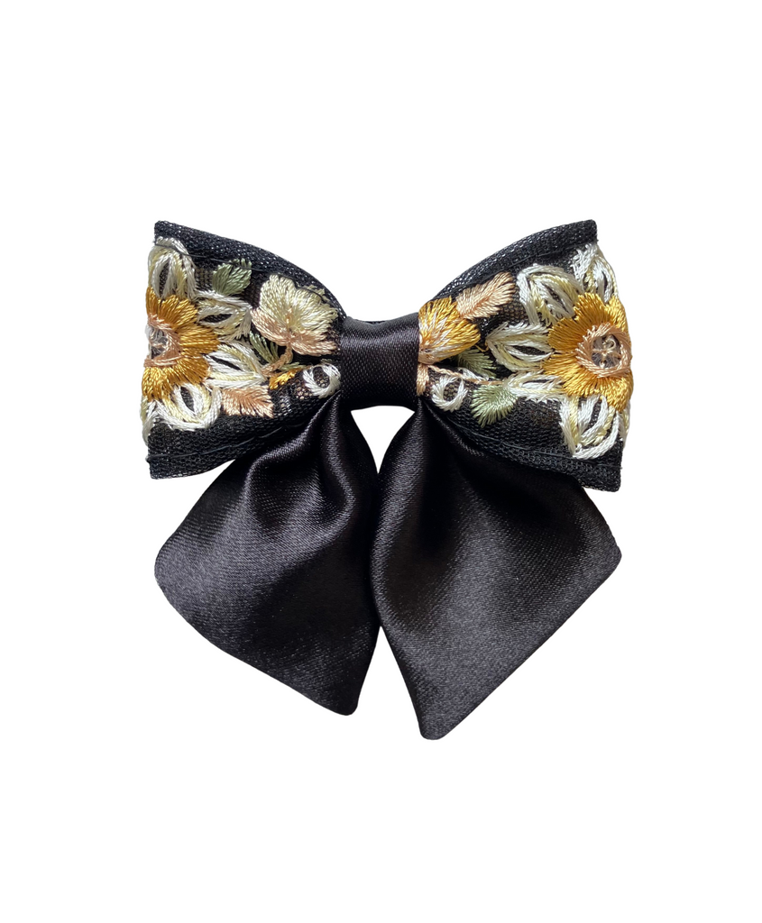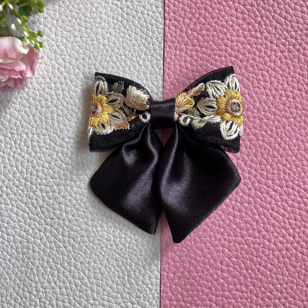 Floral Embroidered Sailor Bow Alligator Hair Clip- Black