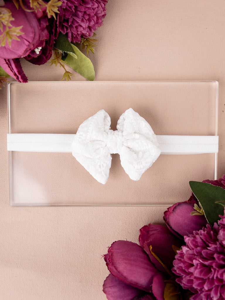 Floral Embroidered Tulle Sailor Bow Headband - White