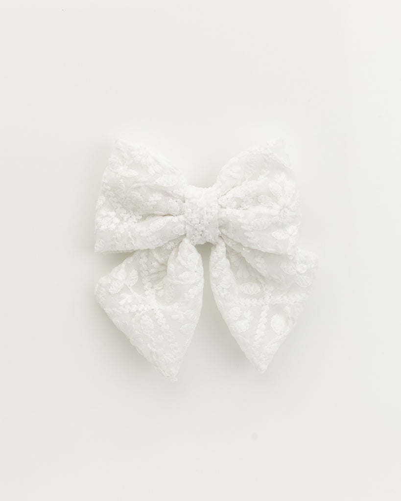 Floral Embroidered Tulle Sailor Bow Alligator Hair Clip - White