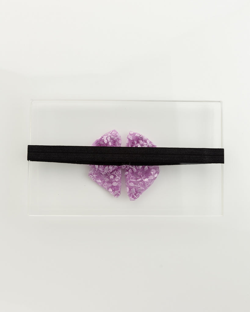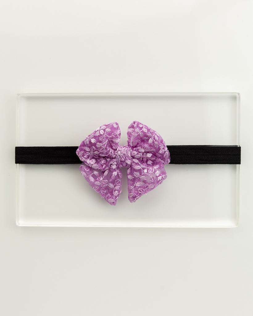 Floral Embroidered Tulle Sailor Bow Headband - Lilac