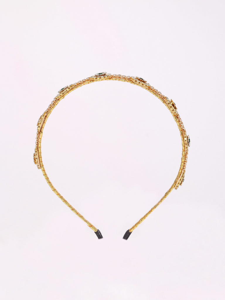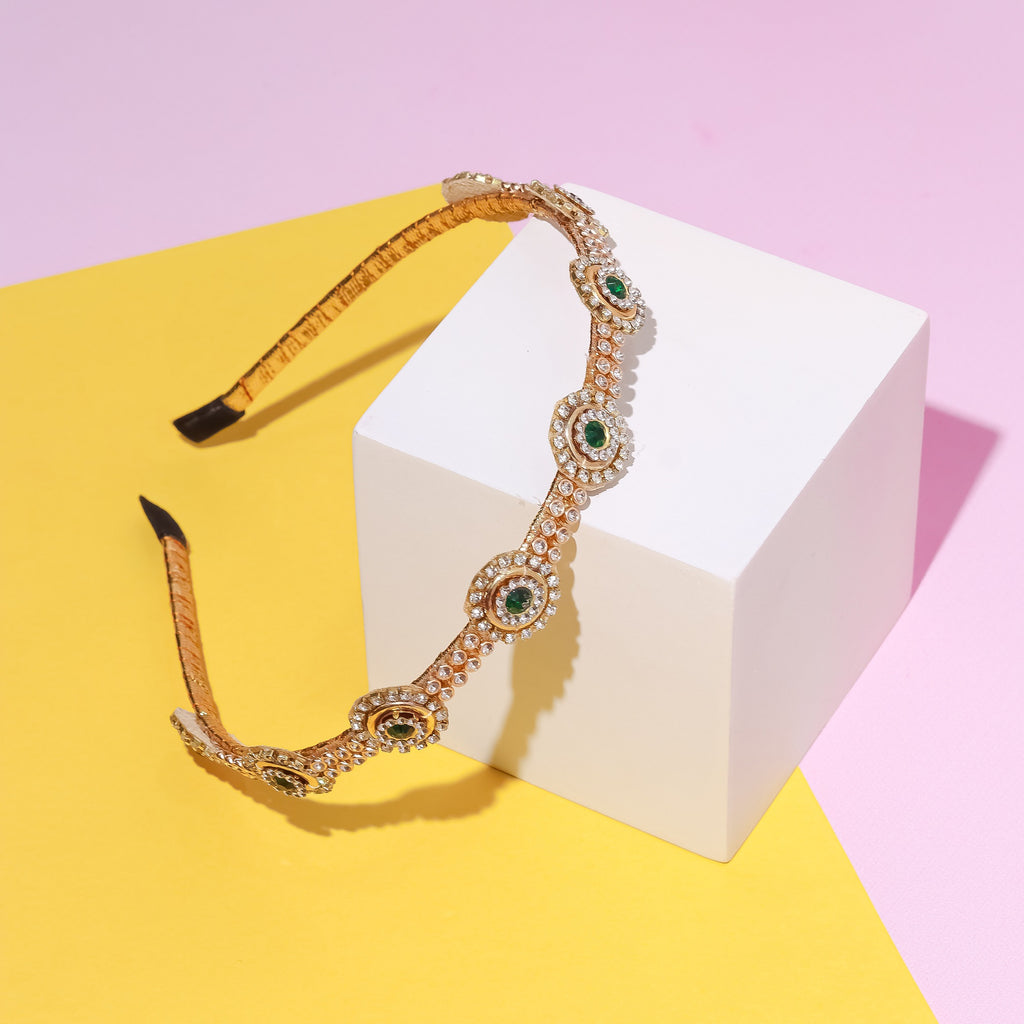 Ethnic Stone Embellished Girls Headband- Golden & Green