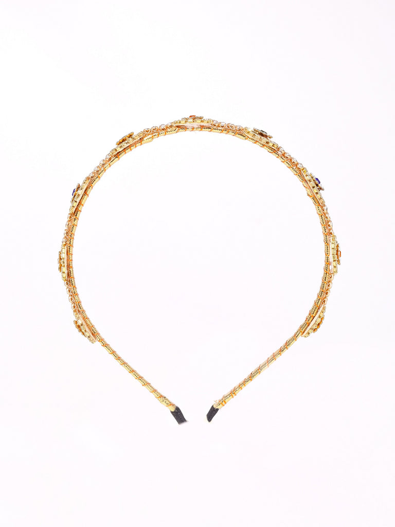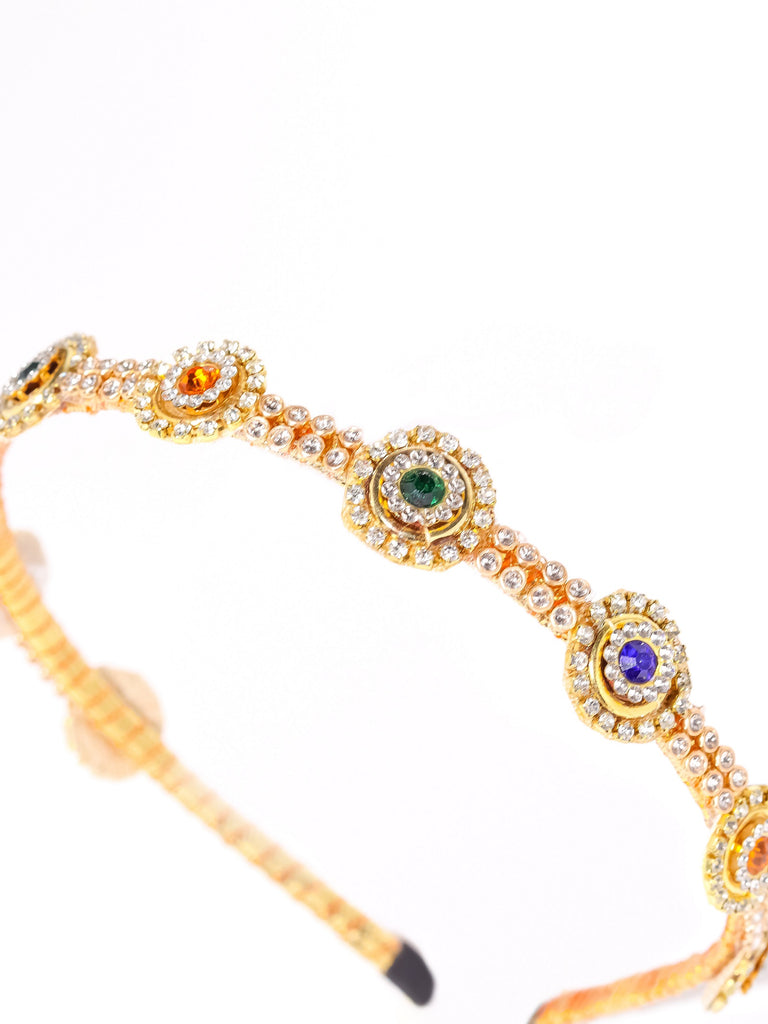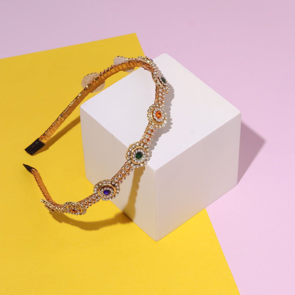 Ethnic Stone Embellished Girls Headband- Golden & Multi Coloured