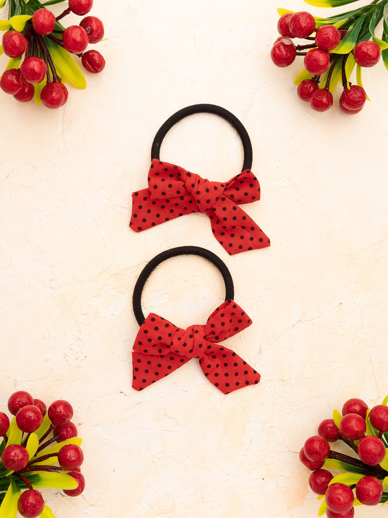 Handmade Tiny Knot Polka Dot Hair Tie Set- Red
