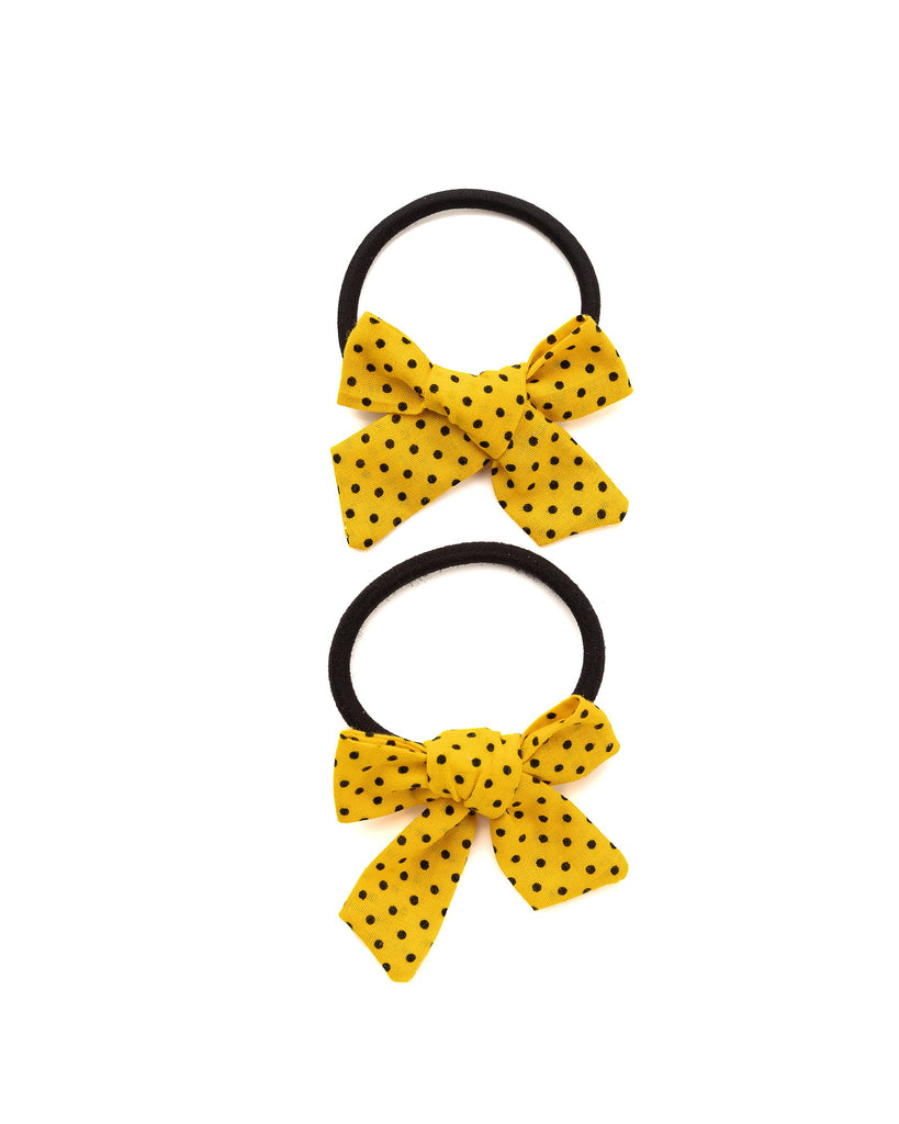 Handmade Tiny Knot Polka Dot Hair Tie Set- Yellow