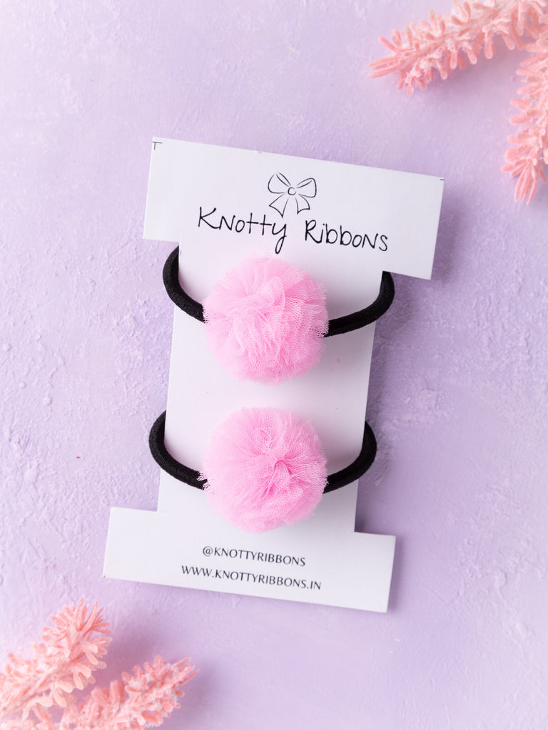 Mini Pom Pom Hair-Tie Set - Light Pink