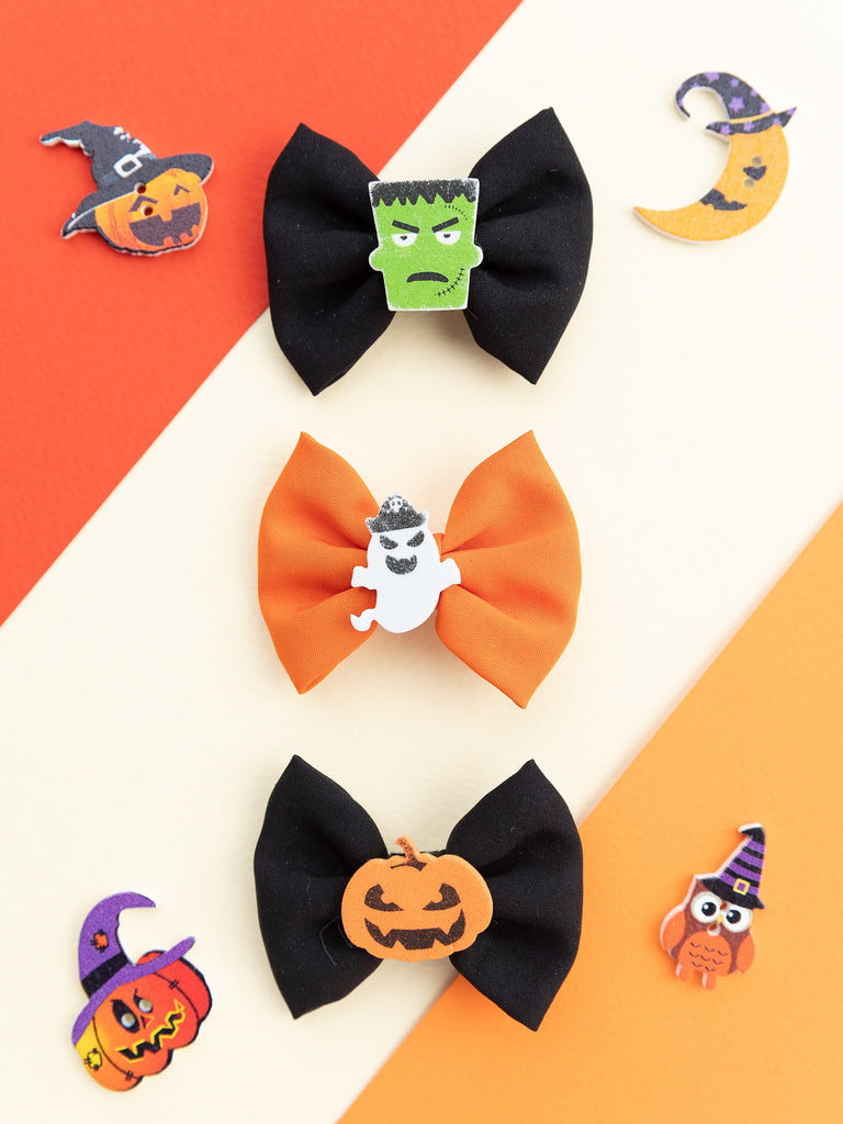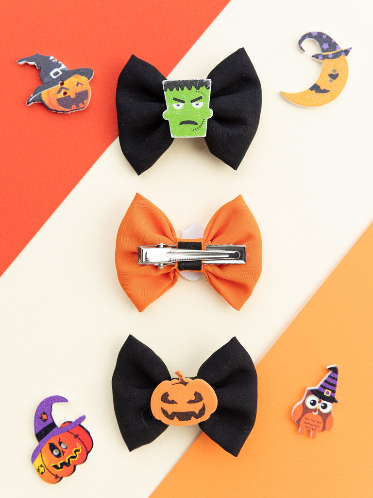 Halloween Themed Bow Applique Detailed Alligator Hair Clip Set - Black & Orange