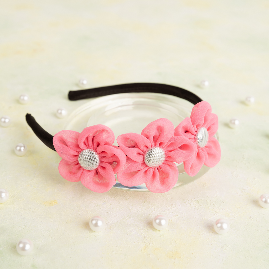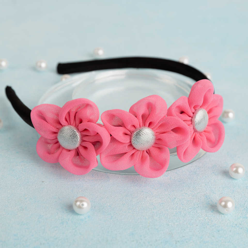 Handmade Chiffon Four Flower Headband - Light Pink