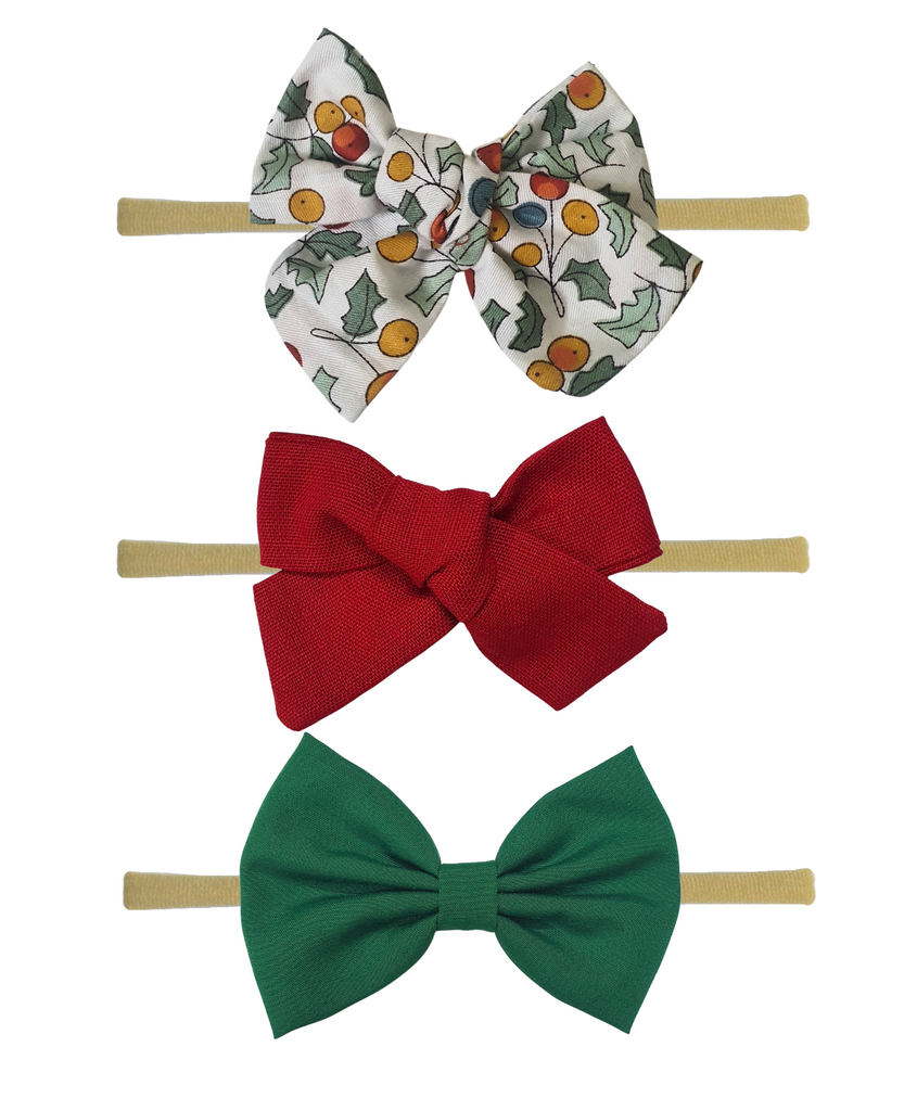 Knotted & Classic Bow Headband Set- Red, Green & White