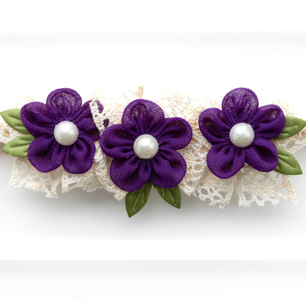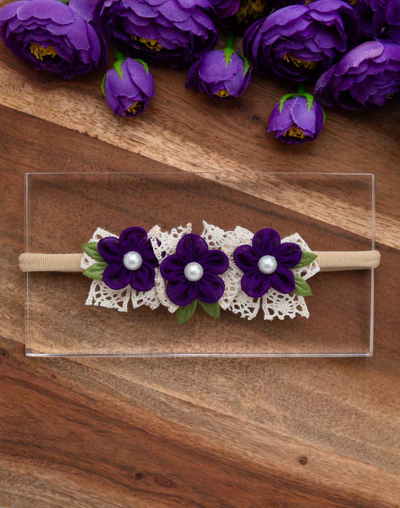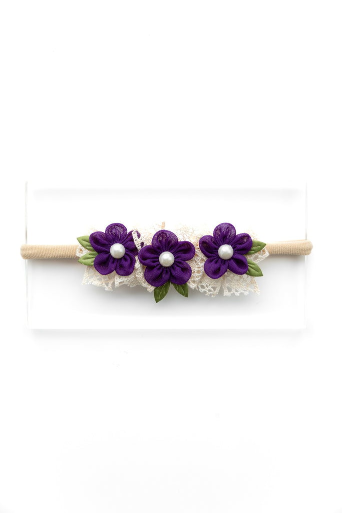 Newborn Three Flower Chiffon & Lace Headband- Purple