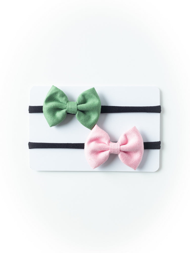 Petite Suede Bow Headband Set- Light Pink & Sage