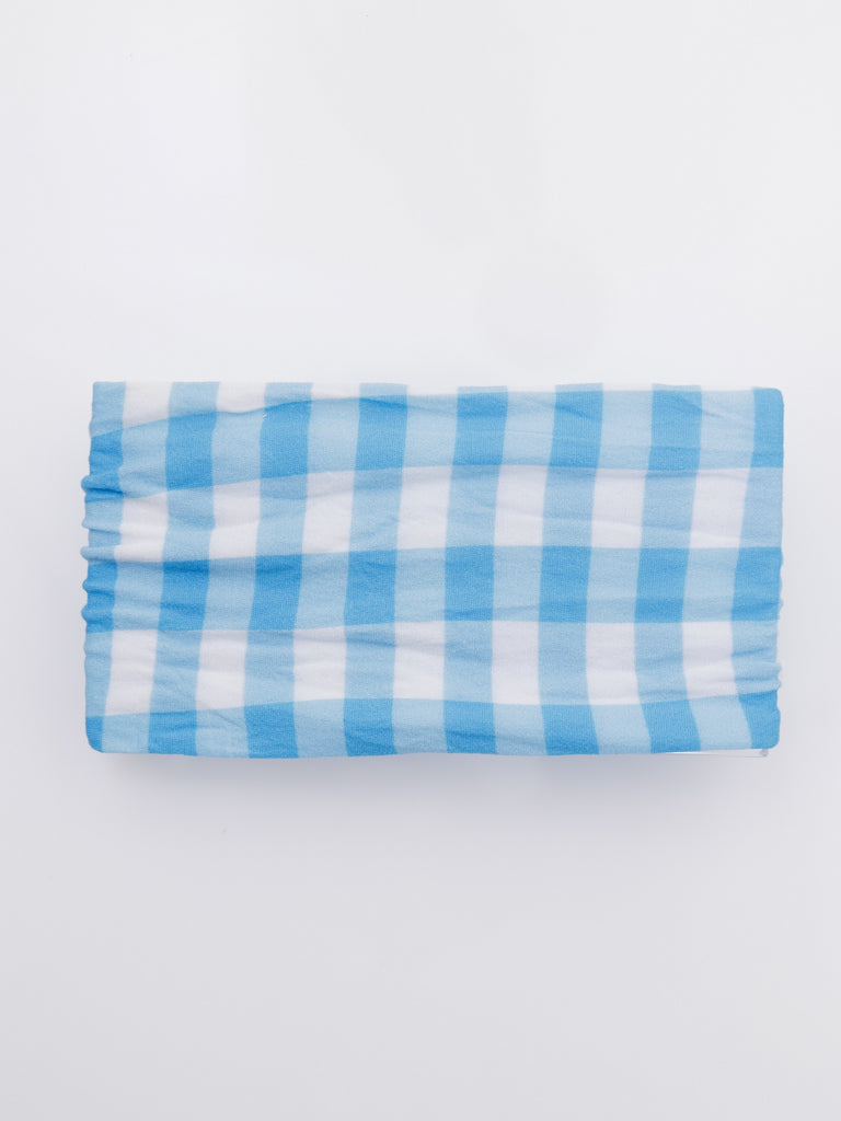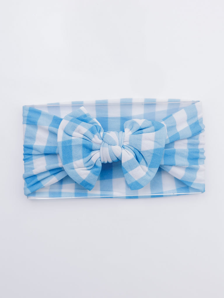 Knotty Ribbons Checkered Knot Top Headwrap - Light Blue & White