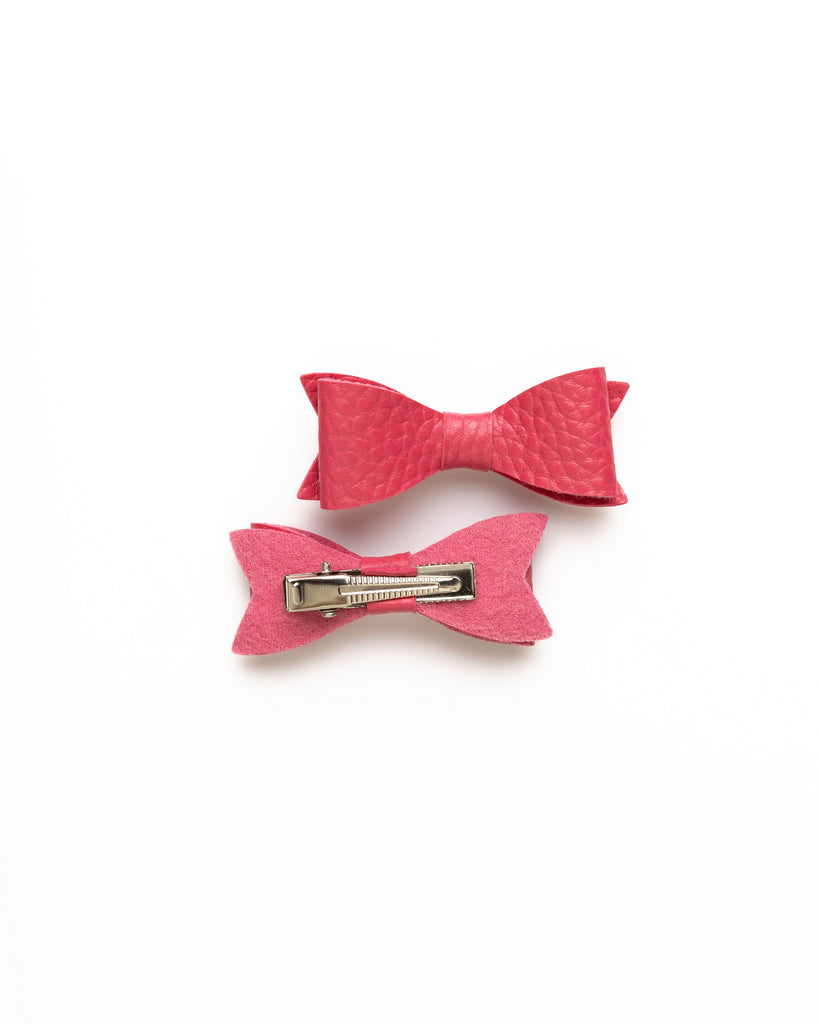 Petite Faux Leather Mini Bow Hair Clip- Barbie Pink