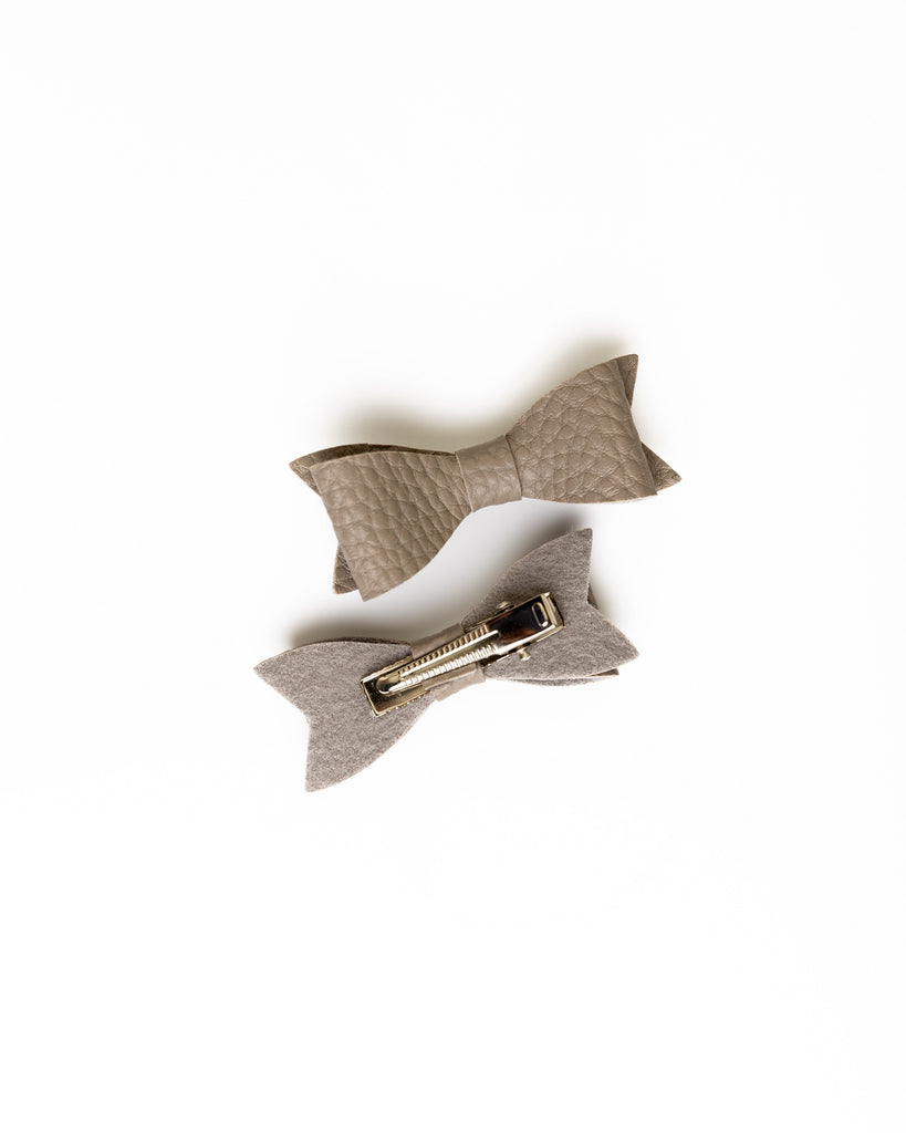 Petite Faux Leather Mini Bow Hair Clip- Grey