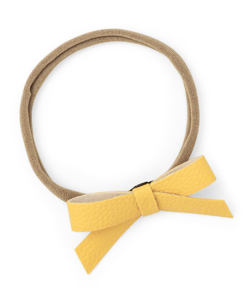 Leather Bow & Knot Headband Set - Yellow & Light Pink