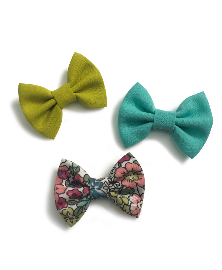 Mini Bow Alligator Clips - Green & Blue