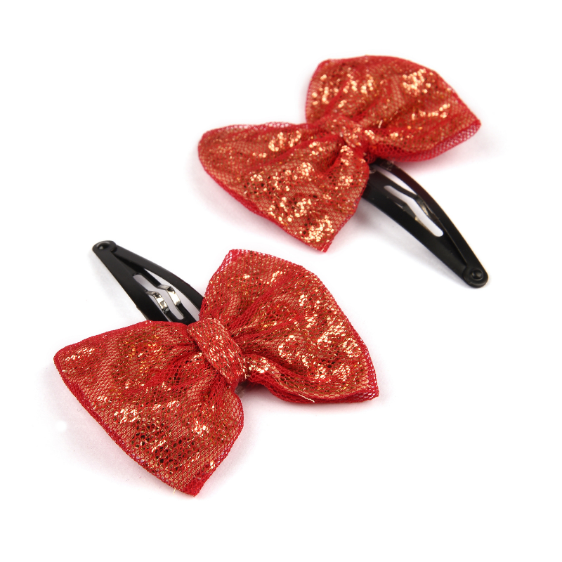 Glitter Sequin Bow Hair Clip - Red
