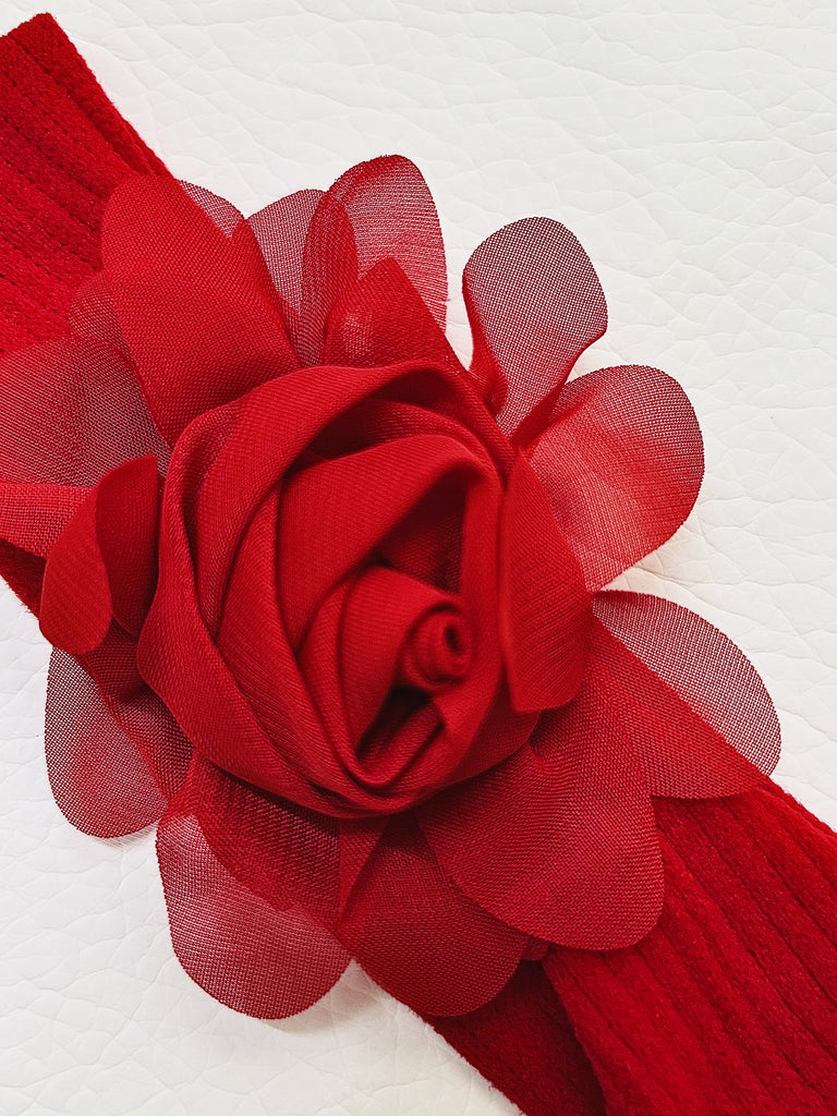Chic Floral Baby Headband – Red | Knotty Ribbons