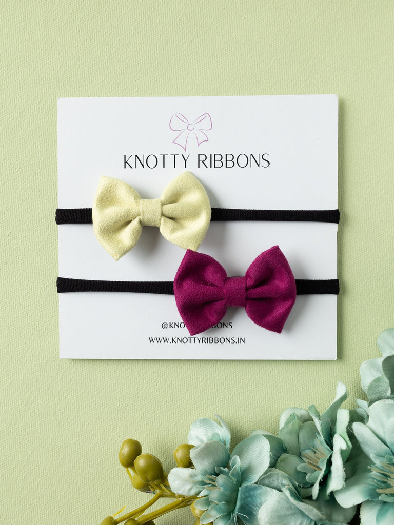 Petite Suede Bow Headband Set- Light Yellow & Dark Pink