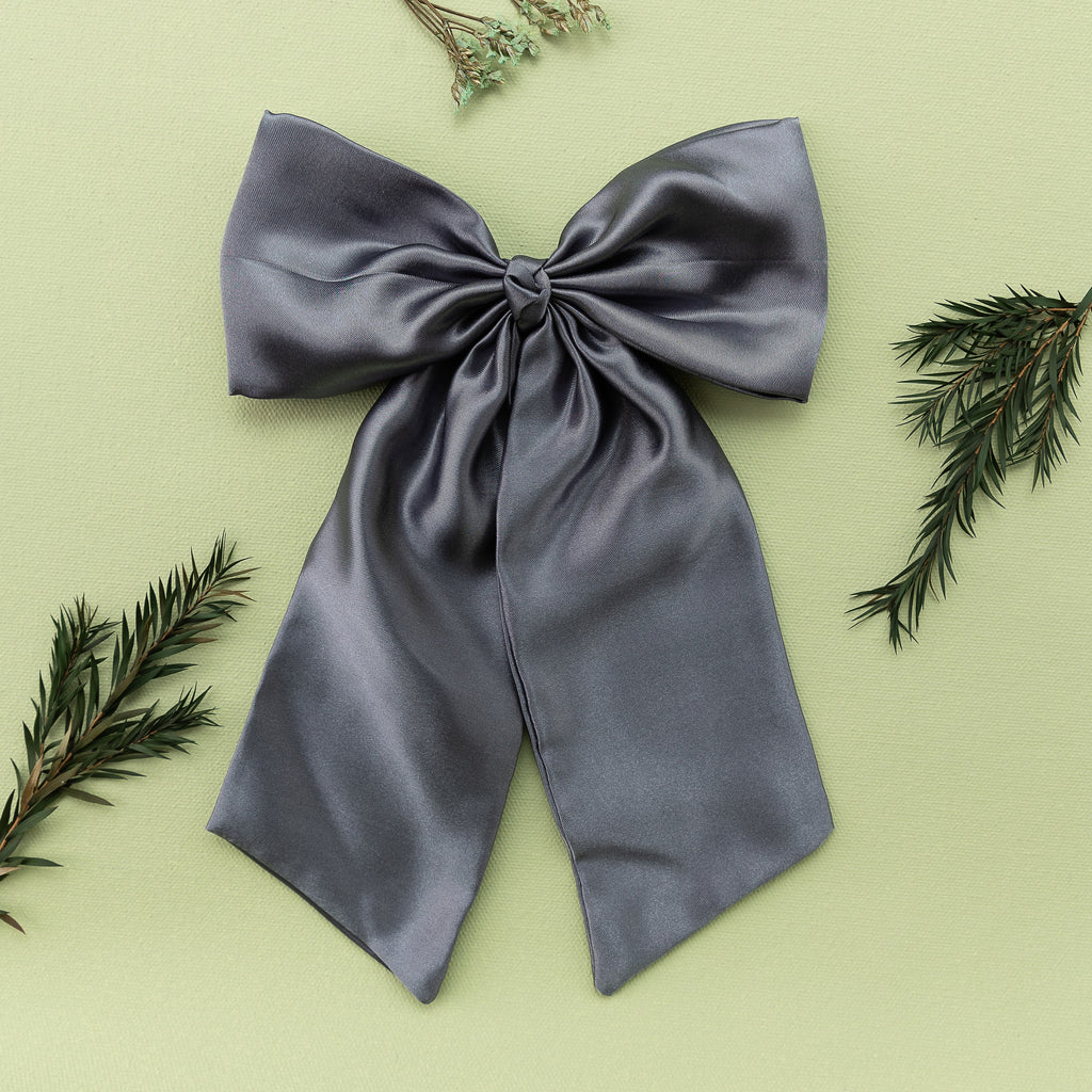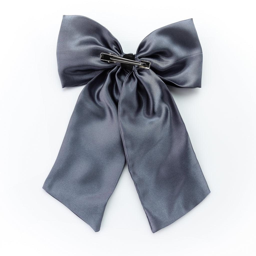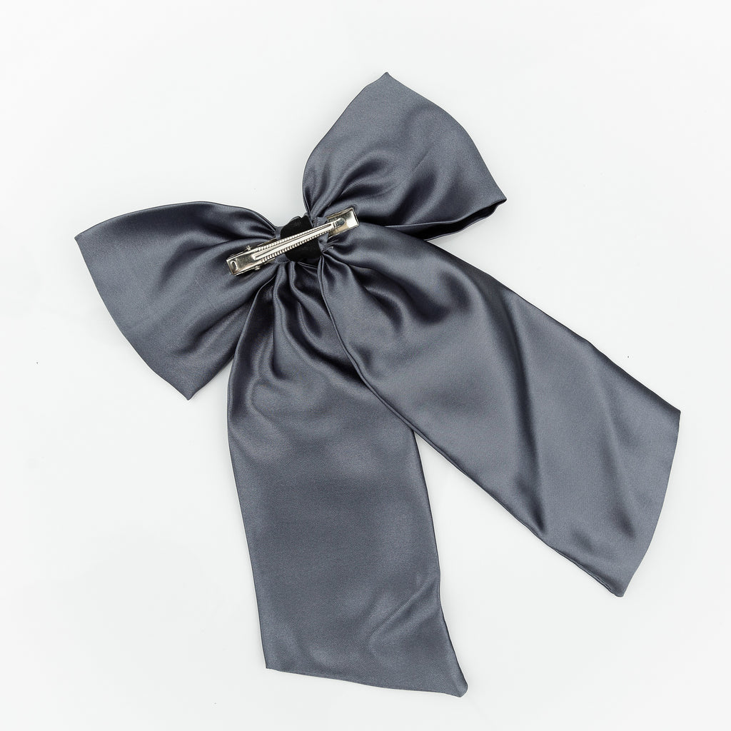 Oversized Satin Sailor Bow Alligator Clip- Gray