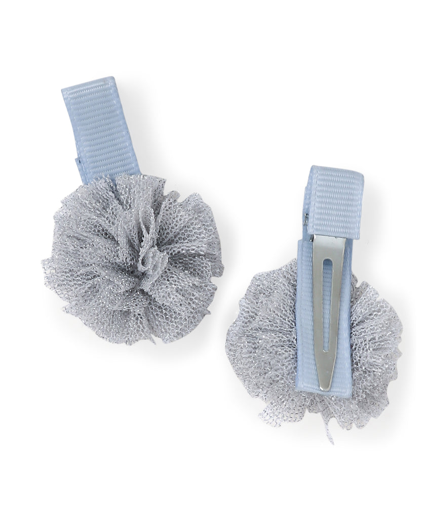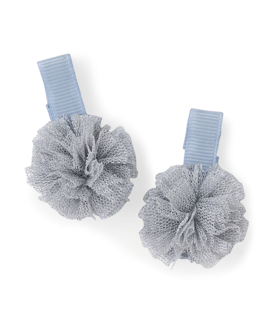 Mini Pom Pom Alligator Clip Set - Light Blue & Silver