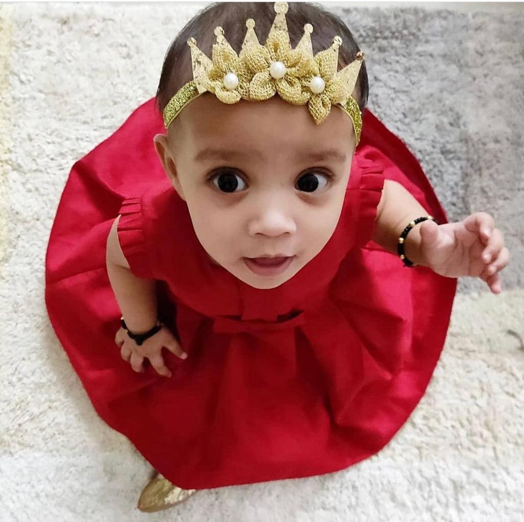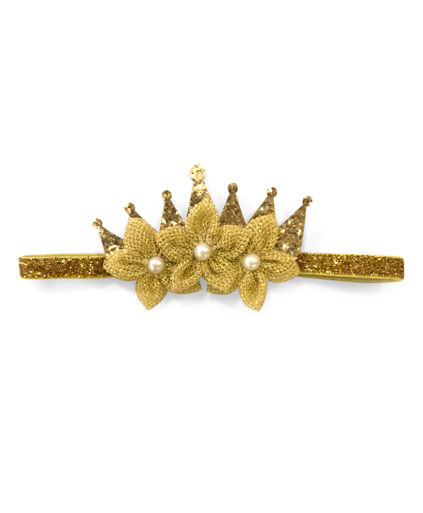 Shimmery Crown & Flower Elasticated Headband - Golden