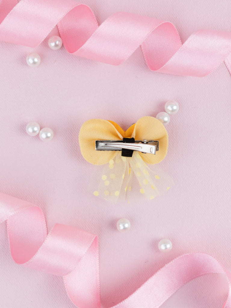 Knotted Butterfly Embellished Kids Tulle Alligator Hair Clip- Yellow
