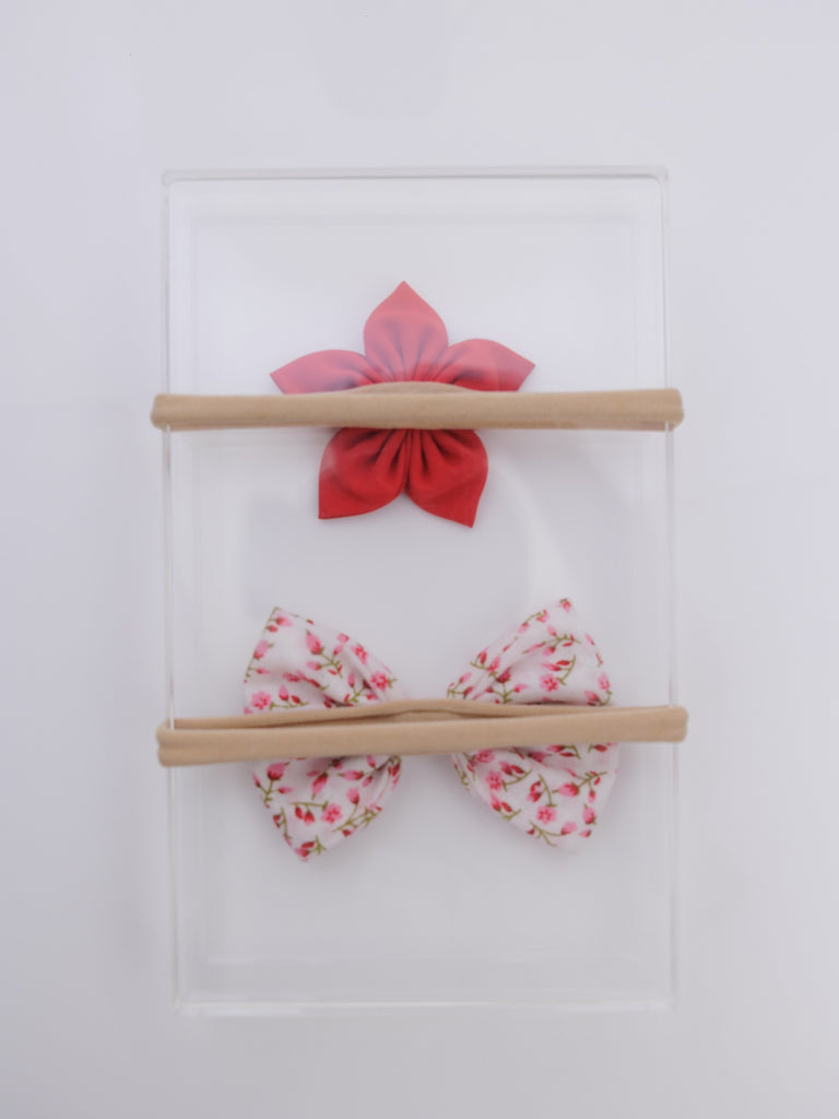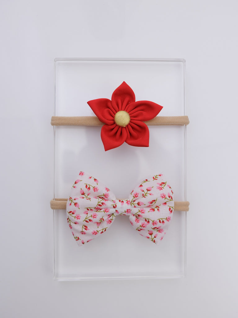 Knotty Ribbons Set of 2: White Floral Bow & Red Flower Headband - White & Red (0-5yrs)