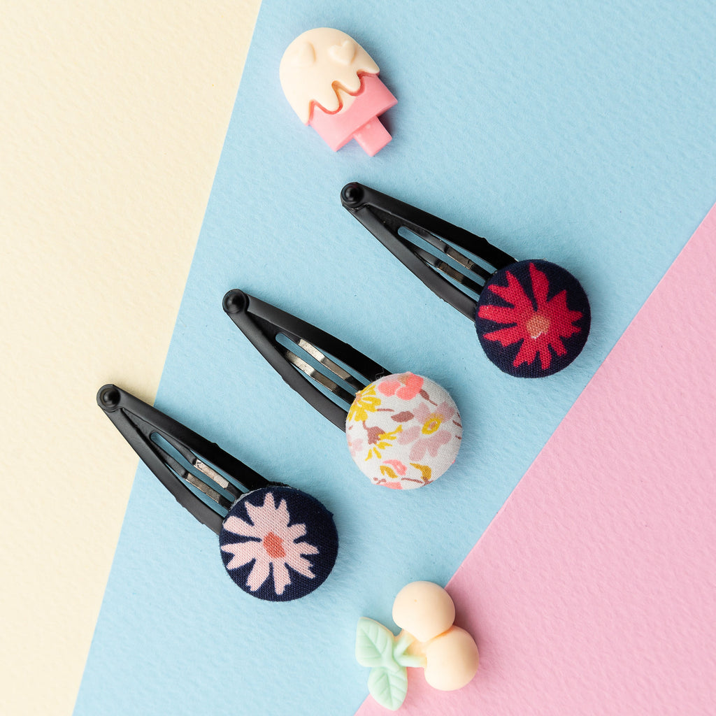 Floral Button Hair Clip Set- Black & White