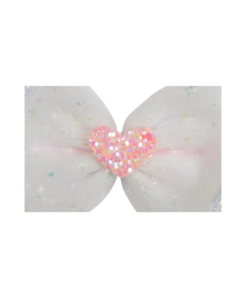 Double Bow Heart Applique Headband- White