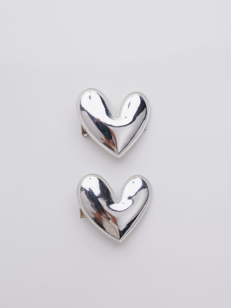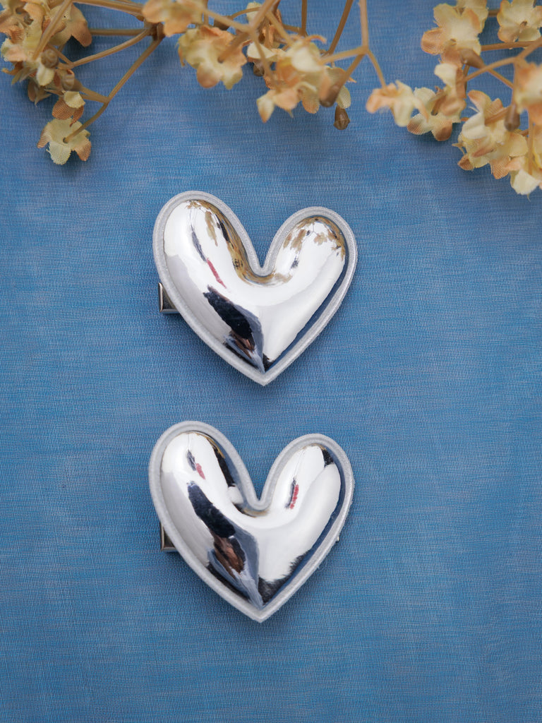 Set of 2 Heart of Chrome Alligator Hair Clips- Silver