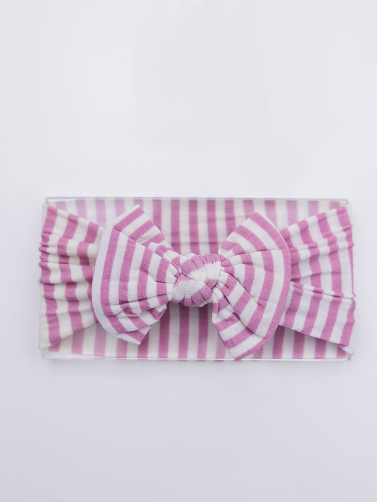Knotty Ribbons Striped Knot Top Headwrap - Pink & White