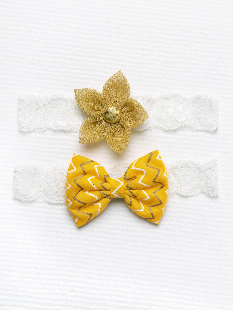 Ethnic Flower & Bow Hairband Set - Golden & Yellow