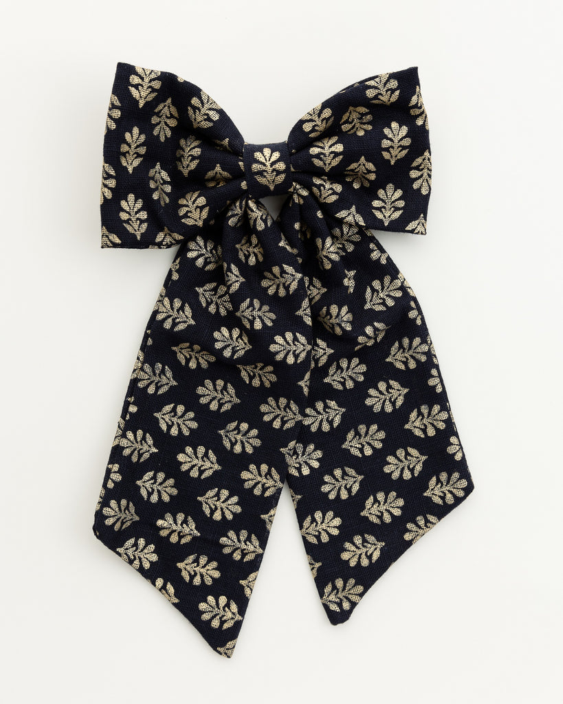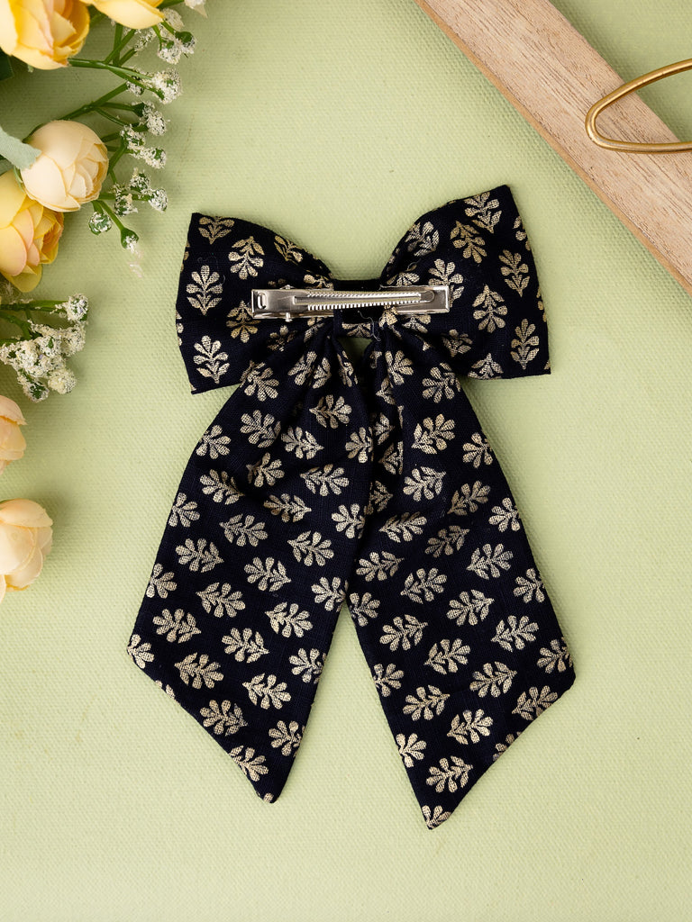 This is an oversized sailor bow hair clip featuring a Black with Golden work on it.
