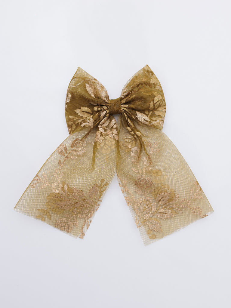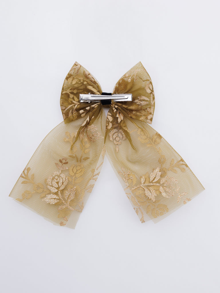 Elevate any hairstyle with the delicate beauty of our Sheer Brown Gold Floral Pattern Sailor Hair Bow!